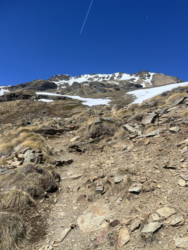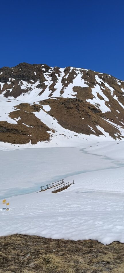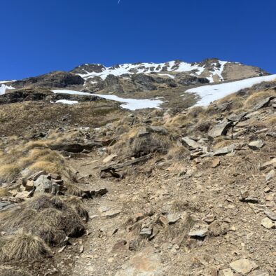 Grazie all’esposizione a sud, possiamo percorrere questo itinerario già nelle prime settimane della stagione, quando le quote più elevate sono ancora innevate. Il contrasto tra i prati in fiore e le cime ancora innevate rende l’esperienza particolarmente suggestiva.