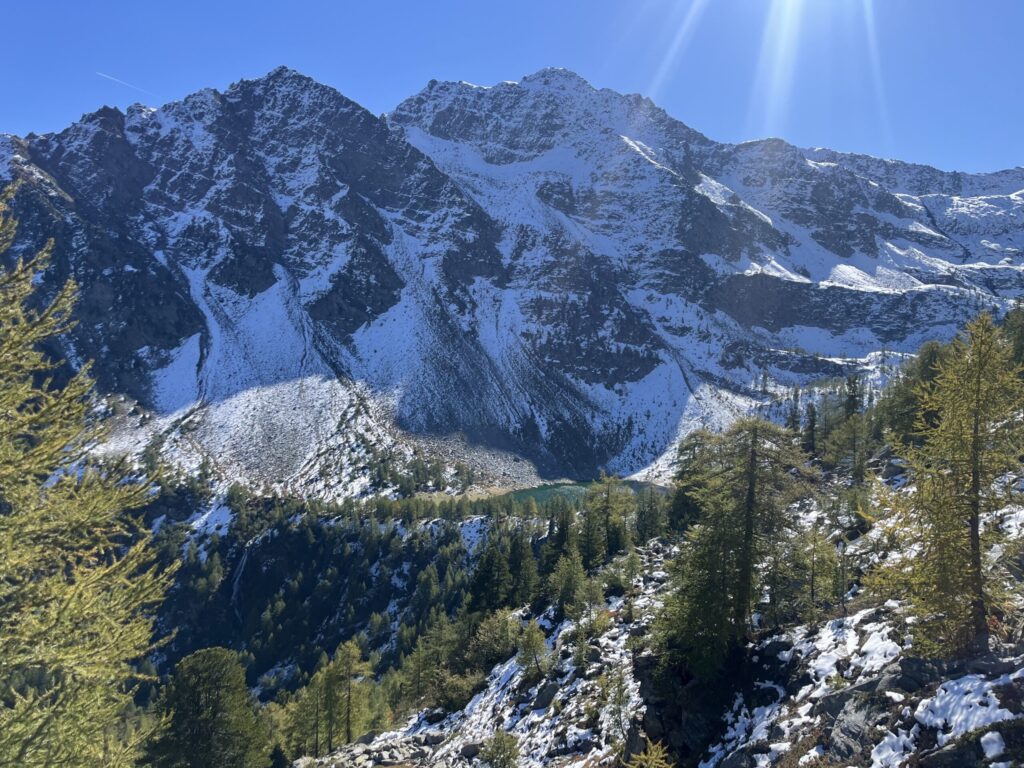 Dal colle scenderemo lungo un bellissimo sentiero che ci condurrà direttamente alle rive del Lago d’Arpy, incorniciato da cime innevate e larici dorati. Da qui, seguendo un percorso ad anello, torneremo alle auto.