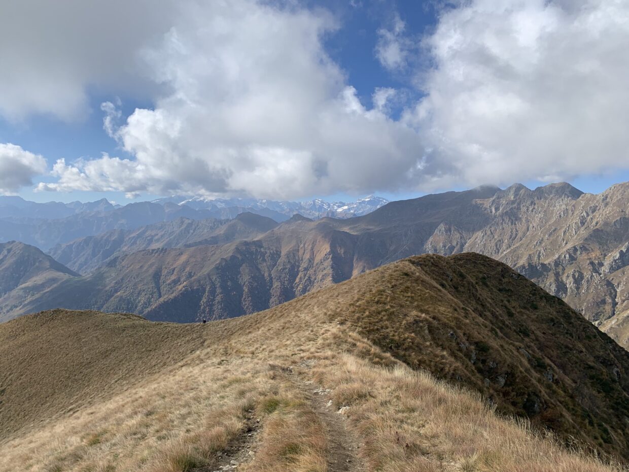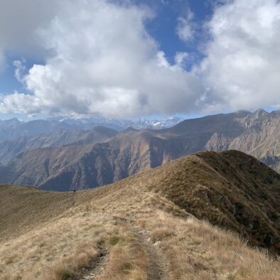 Proseguendo, il bosco si dirada gradualmente e il panorama si apre sempre di più. Gran parte dell’escursione si sviluppa lungo un’ampia dorsale panoramica che rende la camminata particolarmente piacevole. Man mano che si guadagna quota, il Monte Rosa si affaccia sempre più maestoso davanti allo sguardo, insieme a molte delle principali cime valsesiane.